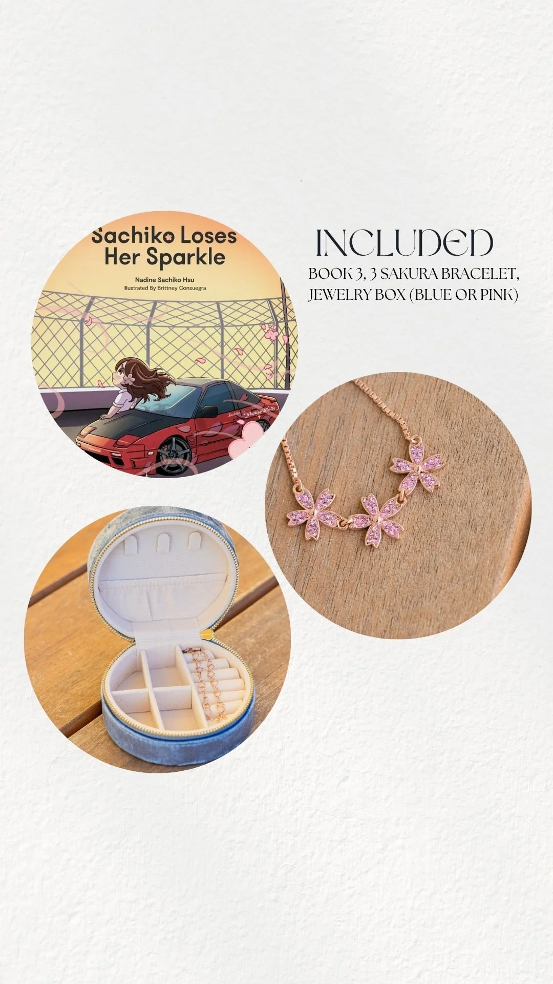 “Sachiko Loses Her Sparkle” is the 3rd installment of the Sachiko Goes Racing children’s book series! Purchase this package and you’ll be first in line to receive the book.